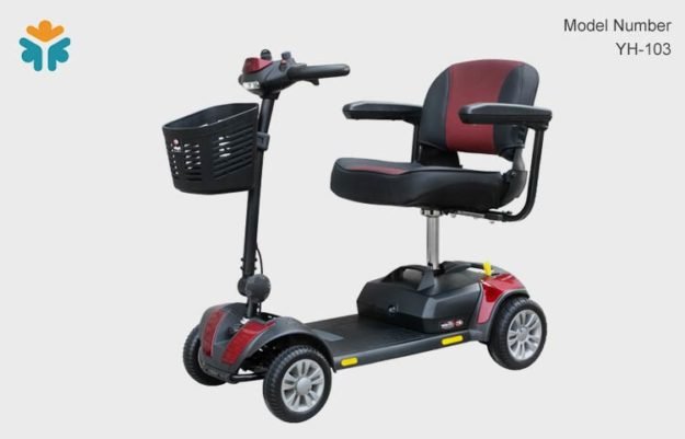 103 scooter ,a compact mobility scooter, It’s easy to assemble and the puncture proof flexible tyres give a soft ride.